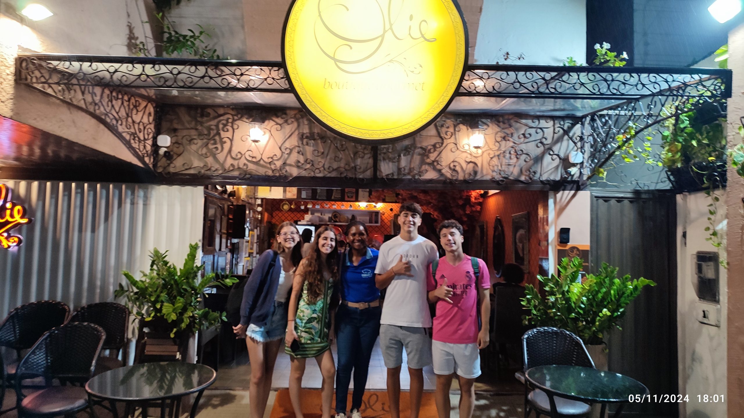 - Aulas Externas em Parceiros: Regularmente, levamos nossos alunos a ambientes reais parceiros. Uma simples atividade de “comprar um sorvete” se transforma em uma aula poderosa de vocabulário e confiança. Eles estão usando o inglês para conseguir algo que desejam, o que torna a experiência de aprender inglês na prática muito mais marcante.